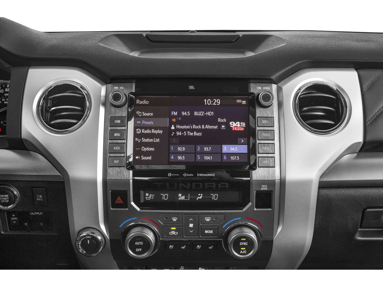 - Radio: Premium JBL Audio w/Dynamic Navigation -inc: 12 speakers including subwoofer and amplifier, 8" touch-screen display, AM/FM/HD Radio, Android Auto, Apple CarPlay, Amazon Alexa compatible, USB media port, 2 USB charge ports, dynamic navigation w/up to 3-year trial of dynamic POI search and dynamic voice recognition, Bluetooth hands-free phone capability w/music streaming and destination assist w/1-year trial and 24/7 live agent assistance to locate your next destination
