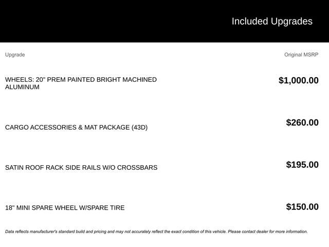 - Wheels: 20" Prem Painted Bright Machined Aluminum